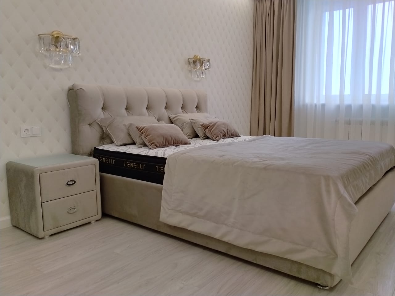 • Выбирали кровать вместе с мужем, как увидели Дакоту у подруги, влюбились сразу, такая красавица. И красивая и качество отличное и функциональная (большое место для хранения вещей в бельевом ящике).Купили комплект мебели в бежевом велюре, кровать ,тумбу Юта и шикарный премиальный матрас Омеро. комплект из шести подушек и покрывала. Такая красота, смотрим и сердце радуется. А спать как комфортно, очень довольны, спасибо компании Perrino и ее сотрудникам.